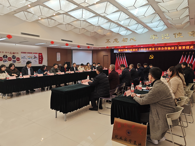 在签约仪式上,翟淑滨对马茜华一行表示热烈欢迎,并介绍了淄博、临淄区的基本情况和引才政策,表达了与学校进一步推进校地合作的愿望。马茜华介绍了学校发展的基本情况,详细介绍了化学化工与环境工程学院人才培养和毕业生就业工作情况。她表示化学化工与环境工程学院专业设置与临淄产业结构非常契合,双方有很好的合作基础,希望校地合作以协议签署为标志,结出更多硕果。
