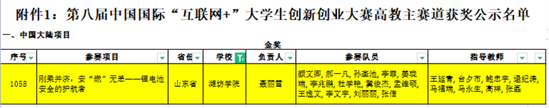 本网讯 近日,中国国际“互联网+”大学生创新创业大赛组委会公布《关于公示第八届中国国际“互联网+”大学生创新创业大赛总决赛有关赛事获奖名单的通知》,我校推送的山东省金奖项目《刚柔并济,安“燃”无恙——锂电池安全的护航者》,在国赛总决赛中再创佳绩,荣获国家级铜奖。