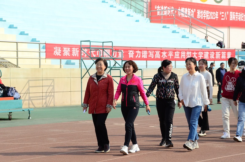本网讯 3月7日下午,全校女教职工健步走活动在学校体育场举行。学校党委副书记徐梅,党委委员、副校长马茜华参加活动。