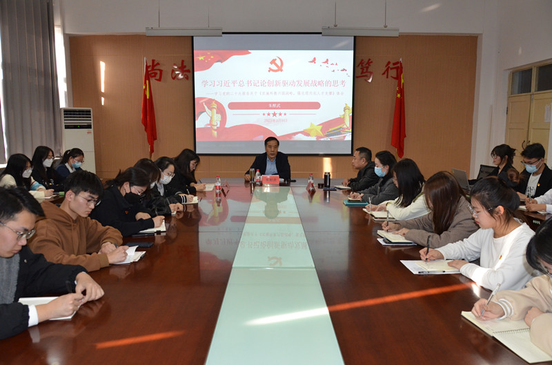 朱猷武以目的论、地位论、道路论、融合论、制度论、主体论、合作论“七论”对党的二十大报告提出的“实施科教兴国战略,强化现代化人才支撑”以及习近平总书记关于创新驱动发展战略的重要论述进行了系统梳理和深入阐释解读。