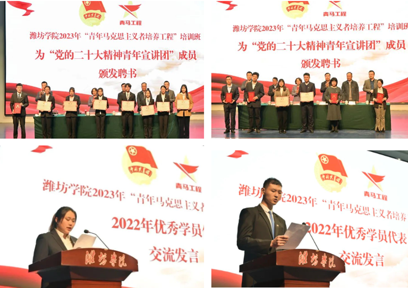 开班仪式上,团委有关负责同志宣读了“党的二十大精神”青年宣讲团成员名单,与会领导为青年宣讲团成员颁发了聘书,并为上一期优秀学员代表颁发了结业证书,优秀学员代表作了交流发言。