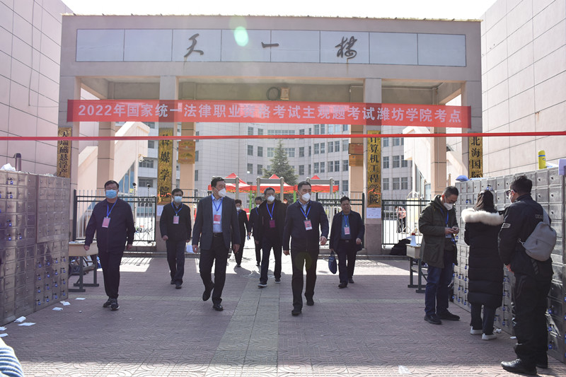 考试期间,山东省司法厅二级巡视员解西义带队到潍坊考区巡考,潍坊市副市长、市公安局党委书记、局长徐磊,潍坊市司法局党委书记、局长、潍坊市强制隔离戒毒所第一政委张志强,学校党委委员、副校长王成端陪同巡考。