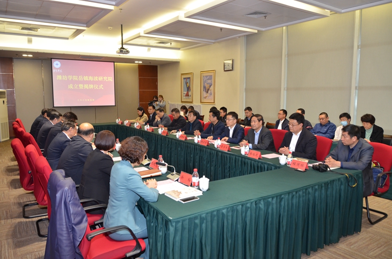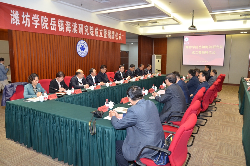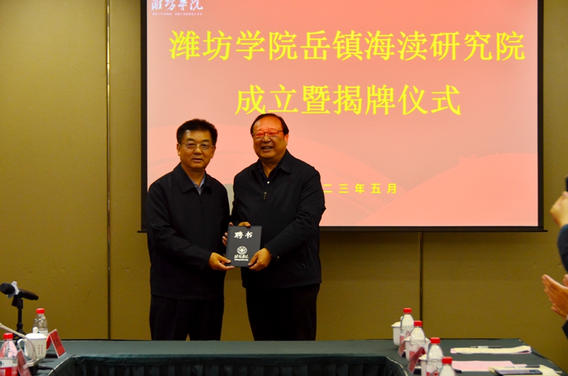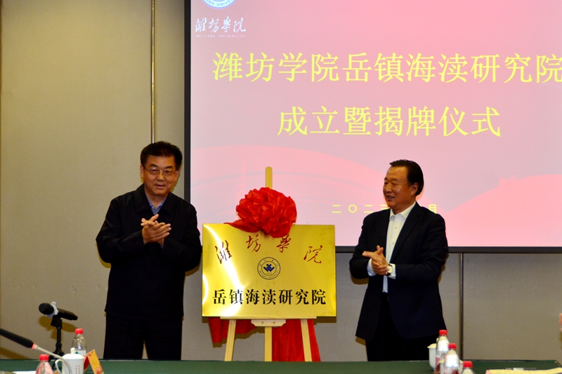 本网讯 5月5日,岳镇海渎研究院成立暨揭牌仪式在我校举行。山东省政协原副主席、省儒商研究会会长许立全,潍坊市政协主席李爱杰,学校党委书记李东,临朐县委书记刘艳芳出席仪式并分别致辞。学校党委副书记、校长冯滨鲁主持仪式。学校党委副书记徐梅,市文化和旅游局局长权文松,市委党史研究院(市地方史志研究院)副院长、市社科联副主席吕俊峰出席仪式。