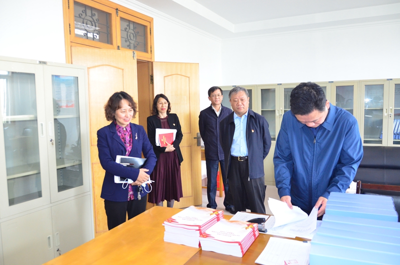 会后,指导组到学校主题教育领导小组办公室现场查阅资料并提出指导意见。