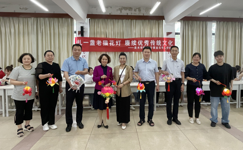 本网讯 5月25日,由学校党委宣传部、团委、学生工作处、校学生会主办,美术学院(陈介祺金石书法学院)团总支承办的,第22届大学生科技文化艺术节“炫彩非遗·薪火相传”非遗进校园系列活动之“老猫花灯”公益培训展演活动,在荟萃楼举办。学校党委副书记徐梅,党委委员、宣传部部长单振涛出席活动,团委、学生工作处、美术学院负责同志和相关负责同志,以及学校二级学院学生代表和美术学院师生代表参加了活动。