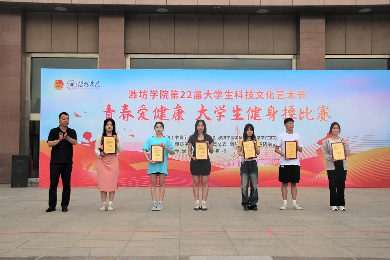 本网讯 6月3日,潍坊学院第22届大学生科技文化艺术节“青春爱健康”大学生健身操比赛在行政楼后广场举行。学校党委委员、宣传部部长单振涛出席。