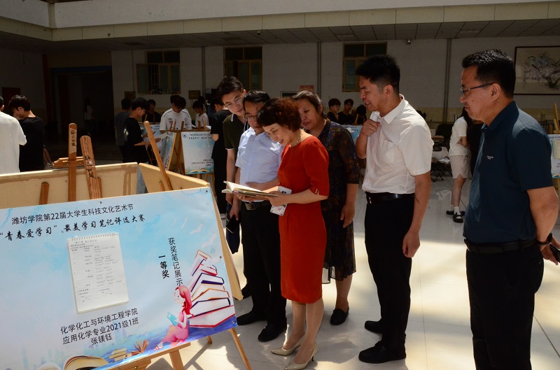 活动前期,由学生工作处、教务处、校团委、化学化工与环境工程学院、校学生会主办,化学化工与环境工程学院团总支、学生会承办了第22届大学生科技文化艺术节“青春爱学习”最美学习笔记评选大赛。各团总支通过学院初赛共推荐学习笔记150多份。承办单位经过工作人员初选、专家会议评选等环节选出获奖名单。物理与电子信息学院朱荣瑶等10名同学的笔记获得一等奖,化学化工与环境工程学院薛美等15名同学的笔记获得二等奖,机械与自动化学院仇嘉琪等20名同学的笔记获得三等奖,外国语学院胡佳珍等42名同学的笔记获得优秀奖。