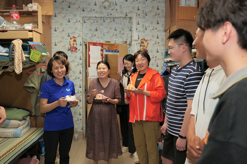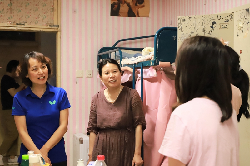 本网讯 6月20日晚,学校党委副书记徐梅深入学生宿舍走访看望即将离校的2023届毕业生,并代表学校向毕业生送上深切关怀和美好祝愿。学生工作处主要负责人,相关学院党总支书记、党总支副书记和毕业班辅导员陪同走访。