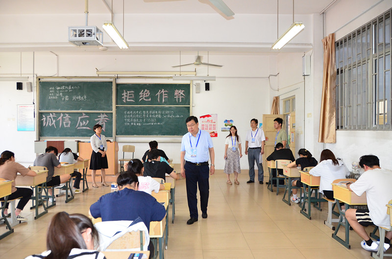 本网讯 6月28日上午,学校党委委员、副校长王成端深入考场巡视检查期末考试工作。教务处负责同志、学校期末考试考风考纪督查第三小组参加活动。