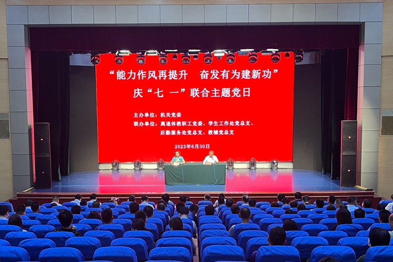 本网讯 为深入开展学习贯彻习近平新时代中国特色社会主义思想主题教育,不断加强党员干部作风能力建设,6月30日,由机关党委主办的管理部门、教辅单位各党总支“能力作风再提升 奋发有为建新功”庆“七一”主题党日活动在图书馆报告厅举行,活动邀请学校党委副书记、主题教育领导小组副组长徐梅讲“力戒形式主义 官僚主义 加强机关作风建设”为题的专题党课。学校党委委员李连成、单振涛出席活动。