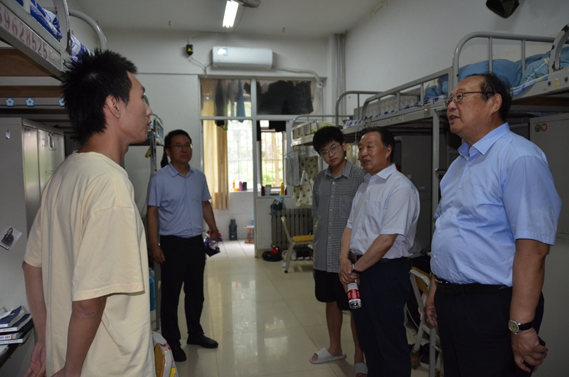 本网讯 7月12日上午,学校党委书记李东,党委副书记、校长冯滨鲁,党委委员、副校长王旭升、李英德,对实验室、防汛物资仓库、配电室、主校区学生公寓、弘德社区、体育场等重点部位进行安全检查。