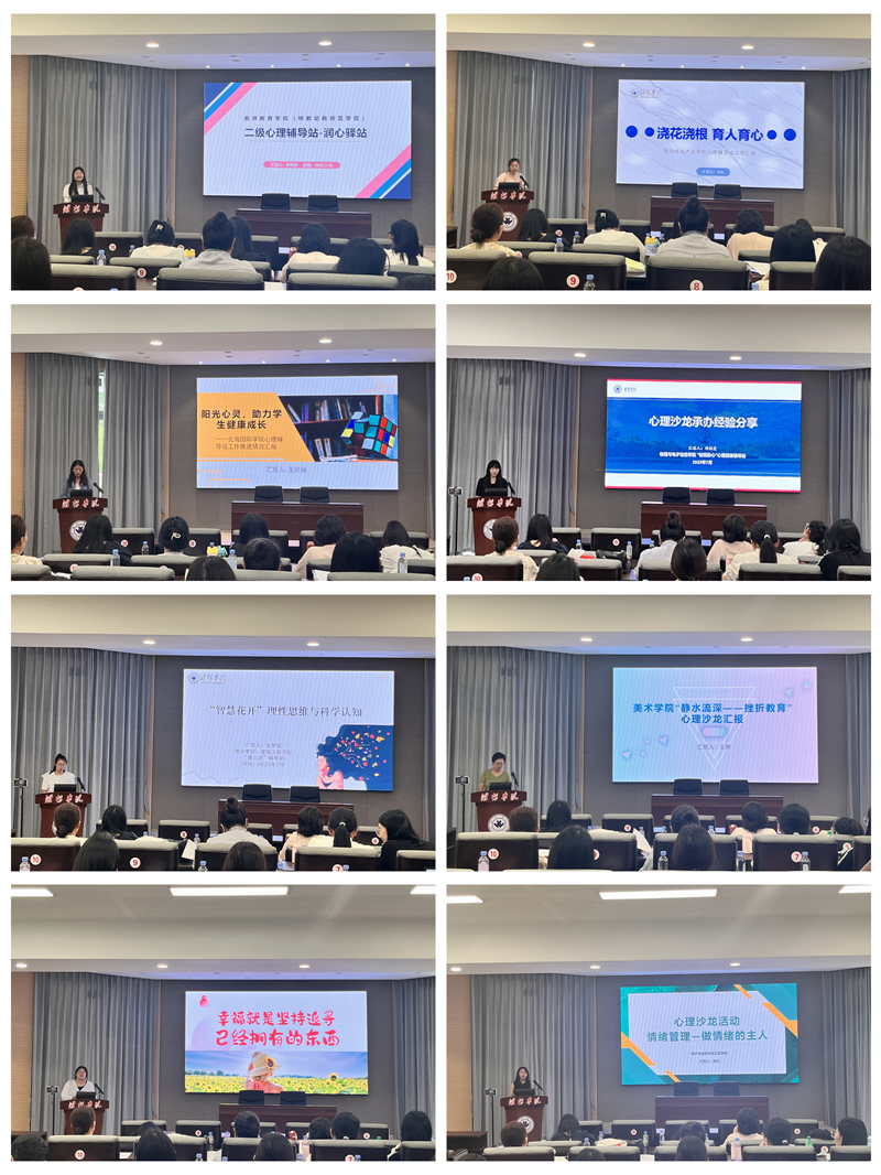 在二级心理辅导站建设专题中,19个心理辅导站对本学期的工作情况进行了汇报,内容涉及辅导站建设、心理健康知识的宣传、心理危机干预、开展的特色活动、取得的成效等。在辅导员心理沙龙专题中,7个心理辅导站分享了本学期承办心理沙龙的经验,8个心理辅导站结合本学院专业特点,对下学期承办心理沙龙进行设计。通过集体讨论,老师们一致认为,这两个专题主题鲜明,形式新颖,让辅导员老师从制度、管理、科研等方面加深了对心理教育的认识,对他们在自我成长领域的提升,有很大帮助;更加拓宽了心理教育途径,能够帮助他们在今后工作中不断探索思政育人的新方法、新思路、新途径,努力做好学生成人、成才的引路人。