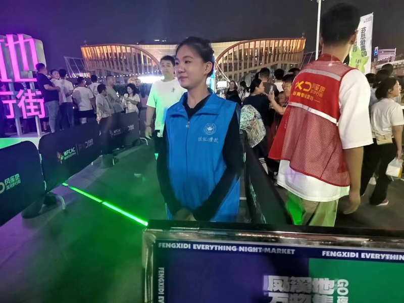 本网讯 近日,潍坊市凤溪地万物集夜市开幕,每当夜幕降临,夜市人流量迅速增加。为了给前来游玩和消费的市民游客提供舒心、有序、干净的消费环境,音乐学院爱乐志愿服务团队的志愿者们来到凤溪地万物集夜市开展为期5天的“文明行动进夜市”志愿服务活动。