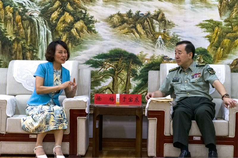 本网讯 7月25日,学校党委副书记徐梅带队到潍坊军分区开展双拥共建慰问活动,为全区广大官兵送上建军节的问候和祝福。潍坊军分区政治委员于宝东大校会见了徐梅一行。党委委员、宣传部部长单振涛参加活动。