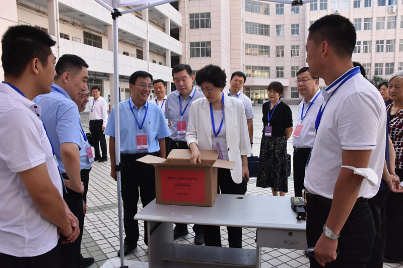 省司法厅党委委员、省纪委监委驻省司法厅纪检监察组组长、二级高级监察官胡凤莹,省纪委监委驻省司法厅纪检监察组副组长李金刚带队来校巡考,潍坊市副市长、市公安局党委书记、局长徐磊陪同。学校党委副书记、校长来逢波,党委委员、副校长王成端调度考务工作并参加活动。督导组对学校考务管理、考场监考、视频监控、设备保障等工作进行现场督导,详细了解电力保障、网络环境、考生服务保障、应急处理预案等情况,听取了相关负责人工作汇报,对学校考务工作给予了高度评价。
