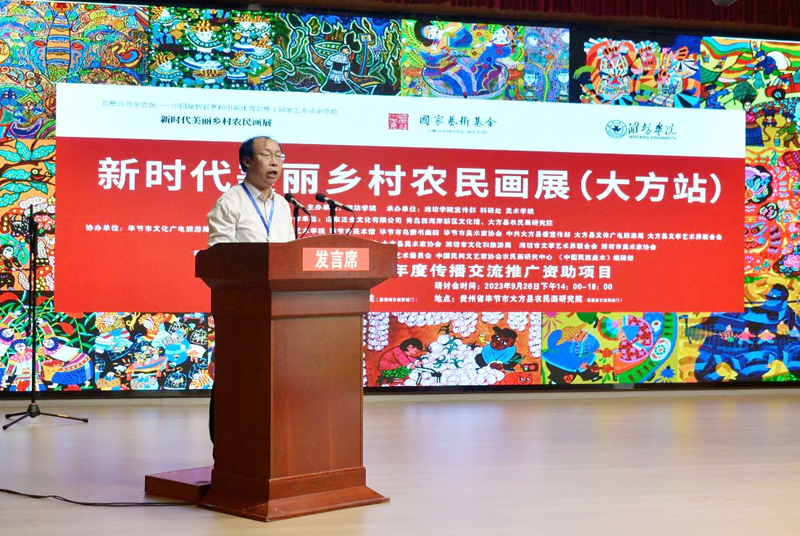 当日下午,“新时代美丽乡村农民画展”研讨会在大方县慕俄格古城西城门城市书房举行。与会人员围绕对中国农民画的回顾与前瞻、农民画创作与艺术语言研究、农民画与美术教育、农民画的产业化、数字化发展等议题进行了研讨。