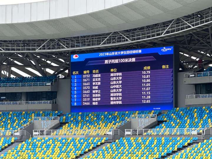 其中最引人注目的是男子丙组100米的金牌,这是我校在本次大学生田径锦标赛中含金量最高的一枚金牌。在该组比赛的决赛中,我校体育学院2022级体育教育专业的冯超龙同学,力压群雄,以10秒78的成绩获得了本次大赛该组金牌,并打破了学校纪录。此举让潍坊学院当天成为了本届大学生田径锦标赛的热搜榜一。因男子丙组参赛队员有高校特招的高水平运动员和运动训练专业运动员参赛,而我校参赛的是体育教育和社会体育专业的体育普招生,起点不同,但凭借我校田径队刻苦备战,在比赛中激烈角逐,顽强拼搏,超常发挥,最后赢得1金3银2铜以及男子丙组团体总分第四名、丙组团体总分第八名的好成绩。中共潍坊市委、潍坊市人民政府专门发来贺信表示祝贺。