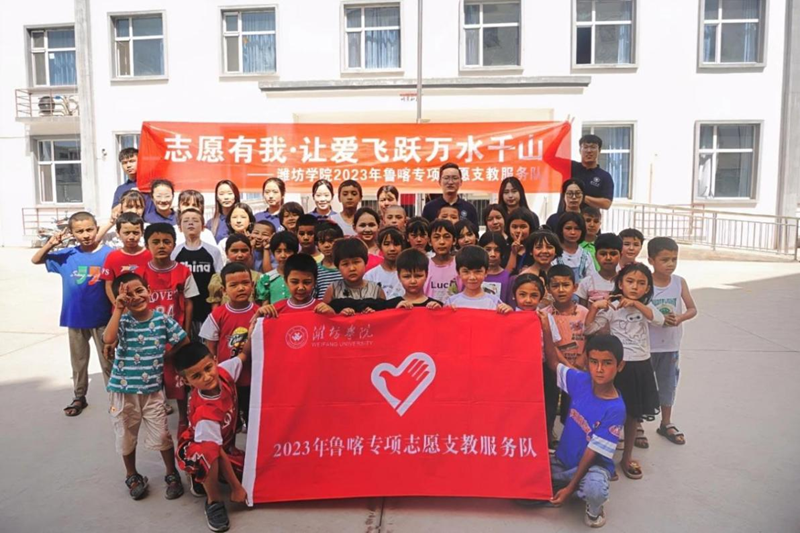 实践育人。积极组织学生参加暑期三下乡、志愿服务等实践活动。2023年暑假期间,学院10名师生组成潍坊学院鲁喀志愿支教服务队,进行教育对口援疆工作,赴疏勒县进行了为期二十天的专项志愿支教服务,获得当地政府和人民群众好评。开展“踏寻奋斗足迹,传承潍院精神”为主题的“走访校友企业”暑期社会实践活动,提高了在校生学业与职业生涯规划意识,进一步开拓了就业岗位,为大学生高质量就业创造了条件。