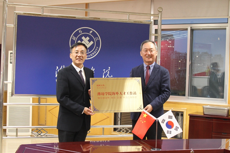 闵渶敦对潍坊学院的热情接待表示衷心感谢,并介绍了朝鲜大学的基本情况及与中国高校的交流合作现状。他表示,朝鲜大学与潍坊学院在师生规模、学校面积上非常相似,校际间人员互访、学生交流频繁,为深化两校合作打下了坚实的基础。期待通过潍坊学院海外人才工作站的建立,为两校提供更多高层次人才交流的机会,全力为两校共同发展做出努力。