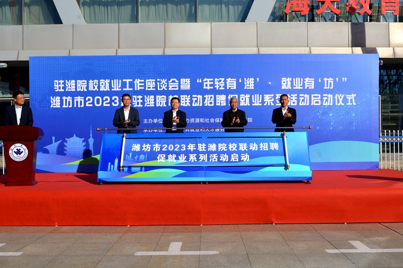 在活动启动仪式上,任立春在致辞中对市人社局领导、驻潍兄弟院校同仁及企业代表们的到来表示热烈欢迎。他表示,“年轻有‘潍’•就业有‘坊’”潍坊市2023年驻潍院校联动招聘促就业系列活动的启动,将进一步推动双方在政行企校领域的深度合作,为信息互通、文化互动、资源互补和人才供需对接搭建起常态化平台,推动更多的企业文化走进校园、激励更多的优秀人才圆梦潍坊,形成人才与产业协同发展、互惠共赢的叠加效应,提升潍坊城市品牌效应。