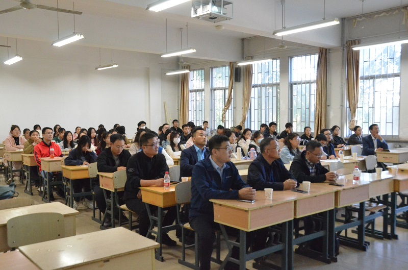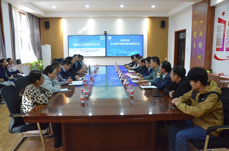 本网讯 10月20日下午,学校化学化工与环境工程学院联合潍坊市工业技术研究会共同举办了“高端水处理技术研讨会”。学校党委委员、副校长李英德出席并致辞,科研处负责同志、各企业代表和该院部分师生参会。