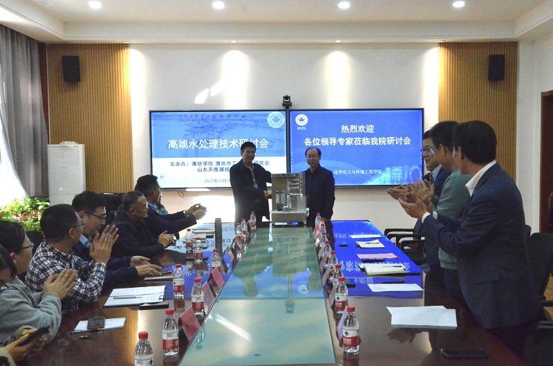 会议中,山东天维膜技术有限公司向该院无偿捐赠了分别用于治理酸性废水、碱性废水和高盐废水的3台电渗析膜设备。