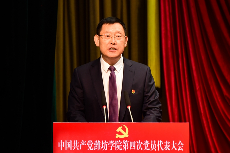 中国共产党潍坊学院第四次党员代表大会,是在全校上下深入学习贯彻党的二十大精神,勇于担当教育强国强省建设时代使命,锚定“走在前、开新局”,全面落实学校“十四五” 发展规划,加压奋进高质量发展新征程的关键时期,召开的一次十分重要的会议。大会的主题是:高举习近平新时代中国特色社会主义思想伟大旗帜,深入学习贯彻党的二十大精神,认真落实省第十二次党代会精神,坚守“为党育人、为国育才”初心使命,聚焦立德树人根本任务,求真务实、守正创新,凝心聚力、挺膺担当,为在新的历史起点上加快建设国内一流应用型大学而不懈奋斗。