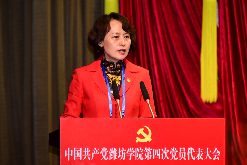 徐梅同志代表中共潍坊学院第三届委员会向大会作了题为《凝心聚力求突破挺膺担当铸新篇为建设国内一流应用型大学而不懈奋斗》的报告。报告全面回顾了学校第三次党员代表大会以来的工作,总结了主要成就和经验,分析了发展面临的形势,展望了未来的发展愿景,明确了未来五年的发展思路。