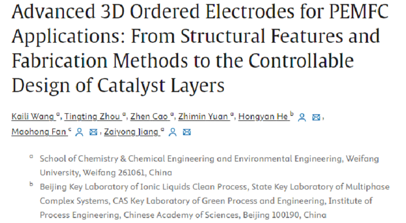 本网讯 近日,化学化工与环境工程学院“CO2捕获与催化转化研究”创新团队在Green Energy & Environment上发表了题为“Advanced 3D Ordered Electrodes for PEMFC Applications: From Structural Features and Fabrication Methods to the Controllable Design of Catalyst Layers”的学术论文。Green Energy & Environment是环境与能源及工程技术等领域的重要期刊,影响因子13.3,为中科院1区Top期刊。团队负责人姜在勇教授为通讯作者、团队成员王开丽老师为第一作者。