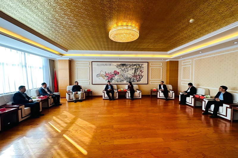 徐梅代表学校对刘世杰一行表示热烈欢迎,介绍了学校第四次党代会有关情况以及提出的“三步走”战略和“一二三四五”发展思路,希望两校今后进一步加强交流,大力拓展合作领域和合作深度。来逢波介绍了学校学科专业设置、人才培养与办学特色、师资队伍、科学研究与社会服务等方面的有关情况。苗金春、武玉杰陪同客人参观了校园及科教产融合创新中心,并就分管领域的工作进行了详细交流。