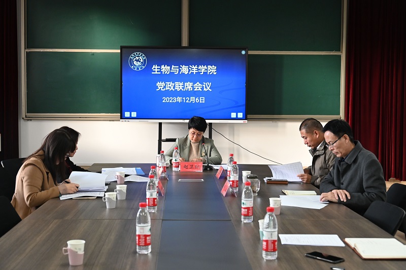 赵卫红表示,生物与海洋学院党总支会议、党政联席会议的前期准备工作充分、议题内容紧扣当前工作,党总支会议的政治把关作用、党政联席会议的议事决策能力有效发挥。她要求学院坚持新发展理念,牢牢抓住国家、省市对高等教育的新要求、新政策,围绕学校第四次党员代表大会确定的目标任务,坚持学校“三步走”发展战略和“一二三四五”发展思路,奋力开创学院发展新局面,为学校国内一流应用型大学建设贡献智慧力量。