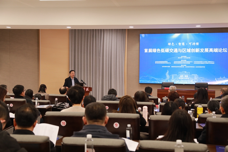 本网讯 12月9日,首届绿色低碳交通与区域创新发展高端论坛在我校举行。学校党委副书记、校长来逢波,省交通运输厅总工程师、二级巡视员赵方德,山东省港口集团党委常委、副总经理高亚致辞。学校党委委员、副校长李英德主持开幕式。相关领域专家、中青年学者,我校和山东交通学院教师代表参加会议。