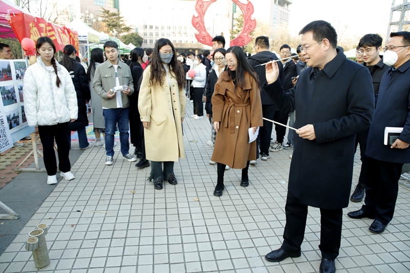 本网讯 为丰富校园文化生活,引导大学生关注自身心理健康,培育阳光向上的积极心态,由学生工作处主办,校心理健康教育咨询中心、各二级学院心理辅导站、大学生心理发展委员会联合承办的“心光筑梦”心理主题游园会于12月7日下午在图书馆前广场举办。学校党委委员、副校长任立春出席活动。