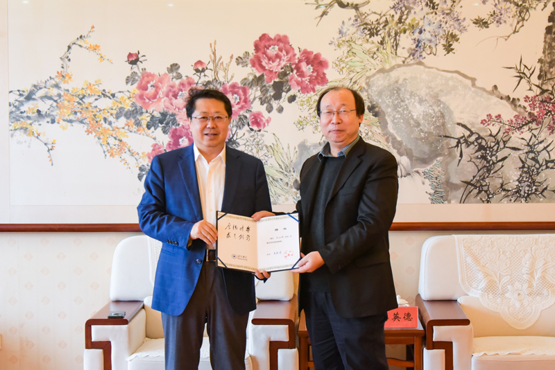 本网讯 12月12日,传媒学院举办学习贯彻习近平文化思想专题讲座,邀请山东大学特聘教授、中央党校文史部教授、中国文艺评论(山东大学)基地主任、山东省文艺评论家协会主席范玉刚担任主讲。学校党委委员、副校长李英德会见范玉刚教授并为其颁发潍坊学院客座教授证书,党委委员、宣传部长张晓静参加会见。
