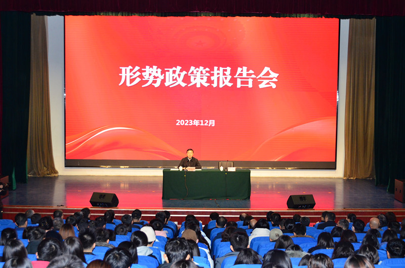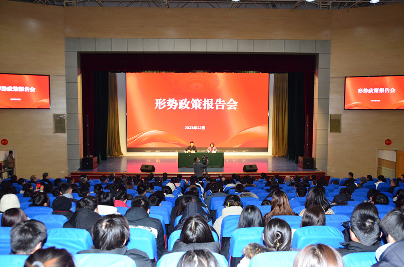 本网讯 12月14日,潍坊市委副书记、市长刘建军来校为师生作形势政策报告。校党委书记徐梅主持报告会,党委副书记、校长来逢波,市政府秘书长张志海,校党委领导班子成员,市直有关部门负责同志出席,师生代表现场聆听报告。