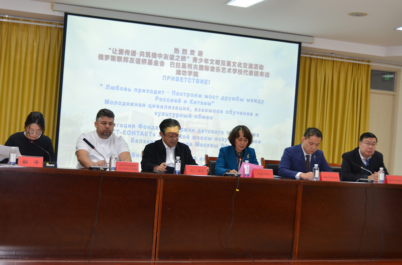 亚利桑德·施东德表示,期待进一步加强与潍坊学院的交流合作。俄中文化艺术专家人才培养选拔项目中国留学服务中心执行主任王照威介绍了俄罗斯联邦友谊桥青少年创造力基金会的情况,对有关项目作了详细说明。