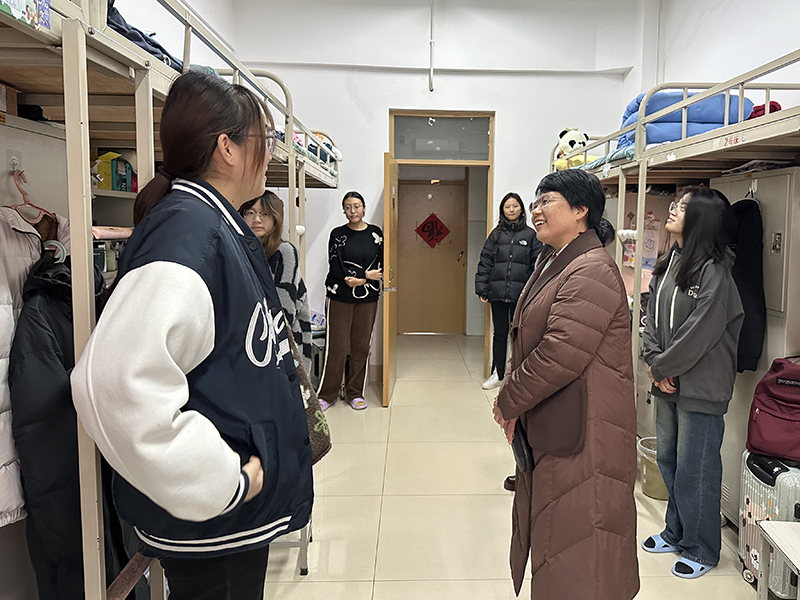 本网讯 为进一步落实领导干部联系班级制度,践行以学生为中心的理念,加强学生教育管理工作,引领学生健康成长,全面提高人才培养质量,12月29日下午,校党委委员、副校长赵卫红深入环境工程专业2023级1班学生宿舍走访慰问。