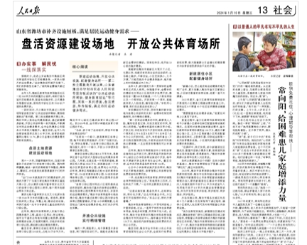 本网讯 《人民日报》(2024年1月10日第13版)以《盘活资源建设场地开放公共体育场所》为题,报道了我市服务居民健身的做法,其中,在我校体育馆挂牌的潍坊市市民活动中心向公众开放的做法受到关注。报道中说,“潍坊学院体育馆拥有21片羽毛球场地、2片篮球场地,过去,一直用于学校学生体育教学用途,场地多有闲置,利用率不足六成。近年来,潍坊市体育局依托潍坊学院体育馆建设潍坊市市民活动中心,每年拿出专项补贴120万元,推动校内体育馆通过低收费的形式向公众开放。”