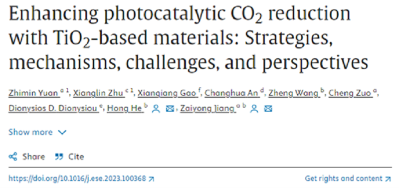 本网讯 近日,我校化学化工与环境工程学院“CO2捕获与催化转化研究”创新团队在环境领域国际顶级期刊之一的Environmental Science and Ecotechnology(影响因子12.6,中科院一区)上发表了题为Enhancing Photocatalytic CO2 Reduction with TiO2-based Materials: Strategies, Mechanisms, Challenges, and Perspectives的学术论文。团队负责人姜在勇为论文通讯作者,团队成员袁之敏为第一作者。此论文是继姜在勇老师在Chem Catalysis 、Angew. Chem. Int. Ed.、Green Energy & Environment 、ACS Sustainable Chem. Eng. 等期刊发表论文之后的又一优秀成果。
