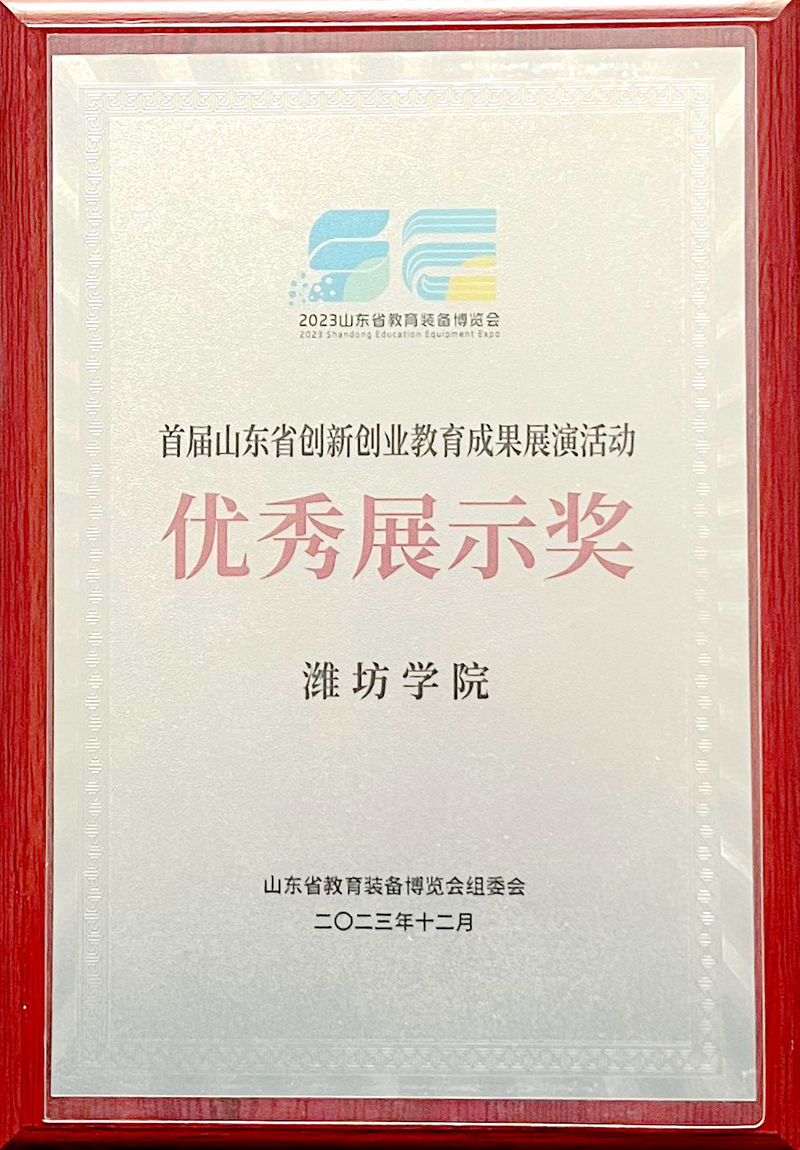 本网讯 近日,山东省教育装备博览会组委会下发《关于公布2023山东省教育装备博览会表彰名单的通知》,我校获评首届山东省创新创业教育成果展演活动“优秀展示奖”。本届教博会,我校携多项创新创业教育成果及项目亮相展会。学校原党委书记李东应邀出席博览会开幕式,到学校展区指导工作,并作为特邀点评嘉宾出席第九届山东省“互联网+”大学生创新创业大赛冠军争夺战。