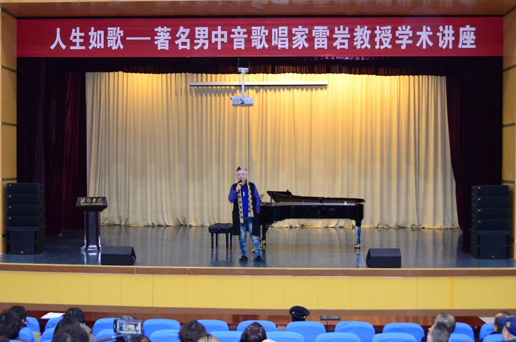 雷岩教授用平实诙谐的语言,介绍了他几十年的艺术生涯。他勉励同学们要珍惜大学的美好时光,努力学好专业知识,不断提升艺术素养;要爱艺术、爱生活,用自己的才华和热情去创造更多的艺术精品。雷岩教授还进行了公开课教学,从科学性、民族性、艺术性、时代性等角度,就声乐艺术的理论方法与实践运用进行了详细的讲解,并且做了现场示范,让现场的师生们深深感受到了声乐的艺术魅力。