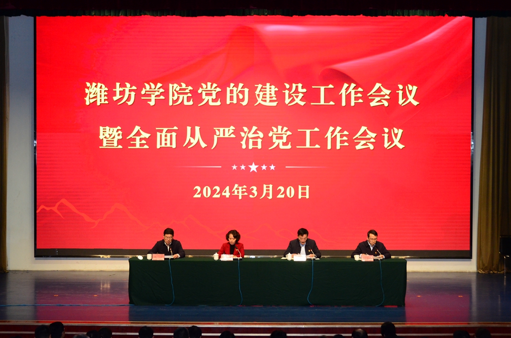 本网讯 3月20日,学校召开2024年党的建设暨全面从严治党工作会议,总结2023年工作,分析形势任务,安排部署2024年工作。校党委书记徐梅出席会议并讲话,党委副书记、校长来逢波主持会议,党委副书记王守全,党委委员王成端、李英德、苗金春、赵卫红、任立春、武玉杰、赵加强、张晓静出席会议。全体处级干部,二级学院团总支(学工办)书记(主任),管理部门、教辅单位正科级干部及部分师生党员代表参加会议。