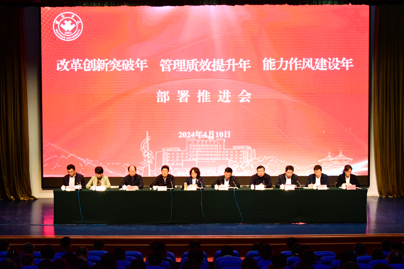 本网讯 4月10日,学校召开“改革创新突破年”“管理质效提升年”“能力作风建设年”三大行动部署推进会,党委书记徐梅作动员讲话,党委副书记、校长来逢波主持会议,党委领导班子成员王守全、王成端、李英德、苗金春、赵卫红、任立春、赵加强、张晓静出席会议。