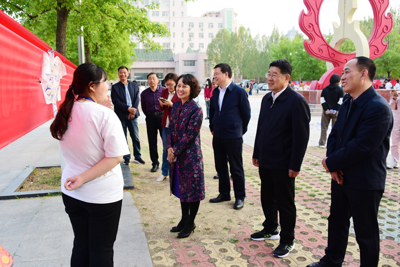 本网讯 为进一步挖掘和弘扬潍坊风筝传统文化,加强学生对潍坊悠久历史的了解,感受“更好潍坊”城市风貌,让潍院学子“在潍坊、知潍坊、爱潍坊”,4月18日,学校在名人广场举办第二届风筝创意设计赛作品展。党委书记徐梅,党委副书记王守全,党委委员、副校长任立春,党委委员、党委宣传部部长张晓静观看展览。