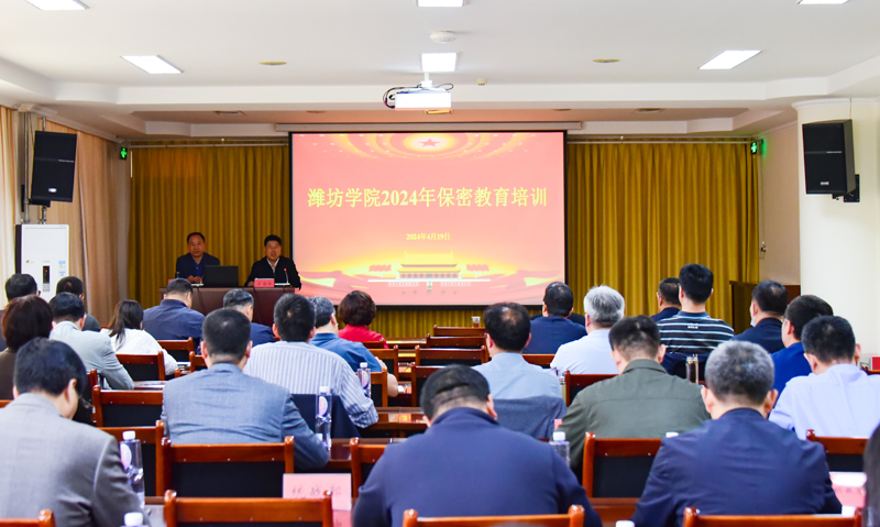 本网讯 4月19日,学校召开2024年保密教育培训会。党委副书记王守全出席并主持会议。潍坊市委办公室二级调研员高向阳作保密专题讲座。