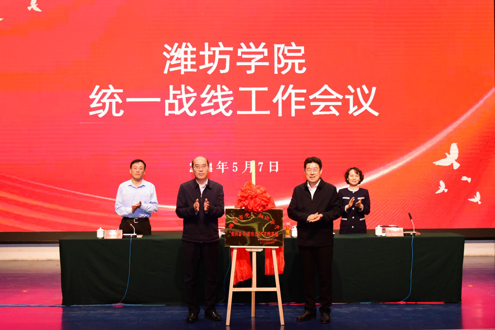 会议对2023年统一战线(工作)先进集体先进个人进行了表彰。丁建营、王守全共同为潍坊市党外知识分子“爱国奋斗·建功立业”实践基地揭牌。