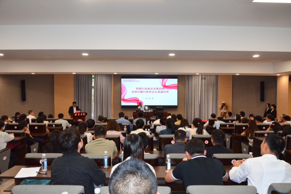 专题讲座由苗金春主持。朱晓峰作题为“把握行政复议发展趋势 发挥化解行政争议主渠道作用”的专题讲座。他围绕《中华人民共和国行政复议法》修订历程、修订背景及九大修订亮点等内容,从贯彻落实习近平法治思想和党中央决策部署的重要举措、推进国家治理体系和治理能力现代化的具体要求、重新构建行政复议功能定位的法律制度三个方面讲解行政复议中的热点、难点问题。与会人员对我国行政复议制度的最新发展有了更加充分的认识,进一步提升了大家学习行政法律制度的兴趣和投身法治政府理论研究和法治政府建设实践的积极性。