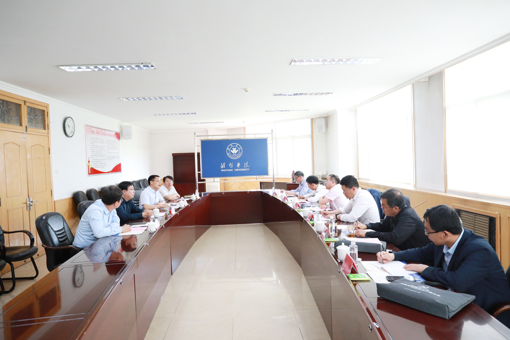 在王成端、赵加强的陪同下,客人考察了物理与电子信息学院党建文化建设,并到学校科教产融合创新中心、智能制造工程实训中心、校史馆、潍坊文化名人馆进行了参观。