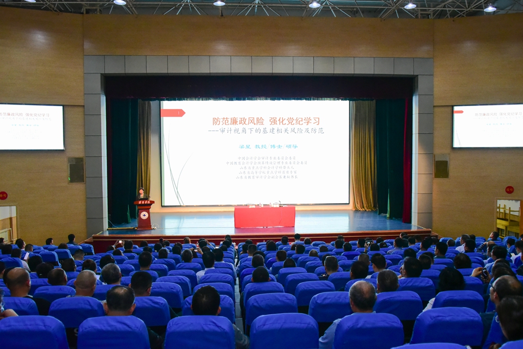 本网讯 为扎实推动党纪学习教育走深走实,5月21日,学校邀请中国会计学会审计专业委员会委员、山东省省级重点学科会计学带头人、山东省教育审计学会副会长兼秘书长梁星教授作了题为“防范廉政风险 强化党纪学习”的专题讲座。党委委员、副校长任立春,党委委员、组织部部长赵加强,党委委员、宣传部部长张晓静出席活动。党委委员、副校长王成端主持并讲话。