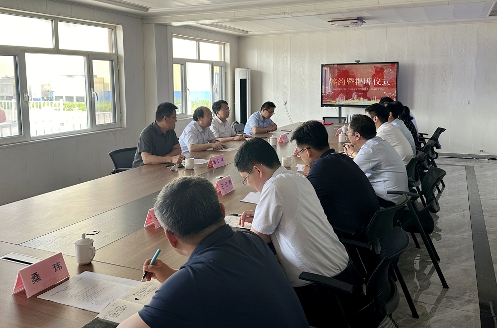 张鹏介绍了滨海化工园区的基本情况,表达了对人才和技术的迫切需求,期望以此次协议签订为契机,与学校在人才培养、项目合作、学生就业等方面加强合作,发挥各自优势,在互惠互利中实现合作共赢。刘军明介绍了企业相关情况,希望以技术研发中心为平台,建立长期稳定、深度融合的新型校企合作关系。他表示,企业将加大对技术研发中心的支持,投入400—600万元的科研经费,与学校在智慧环保领域开拓创新。